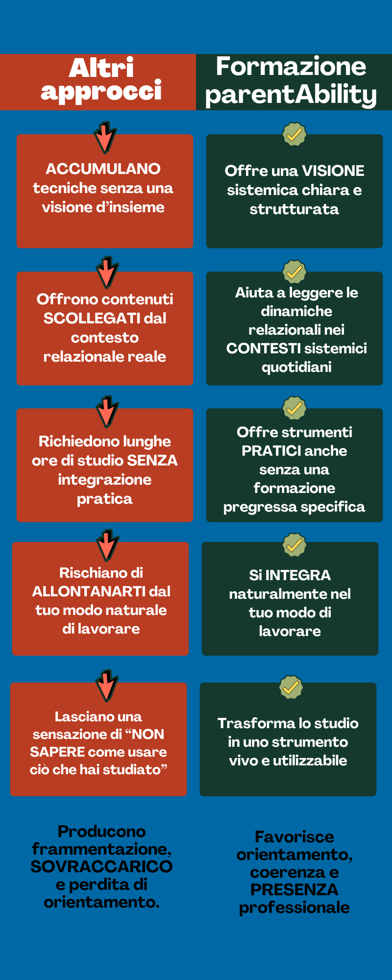 parentAbility si configura oggi come una realtà formativa strutturata che integra percorsi esperienziali, formazione specialistica, una Community gratuita di ricerca e confronto e un’Academy digitale pensata per garantire continuità, accessibilità e crescita autonoma nella visione sistemica.